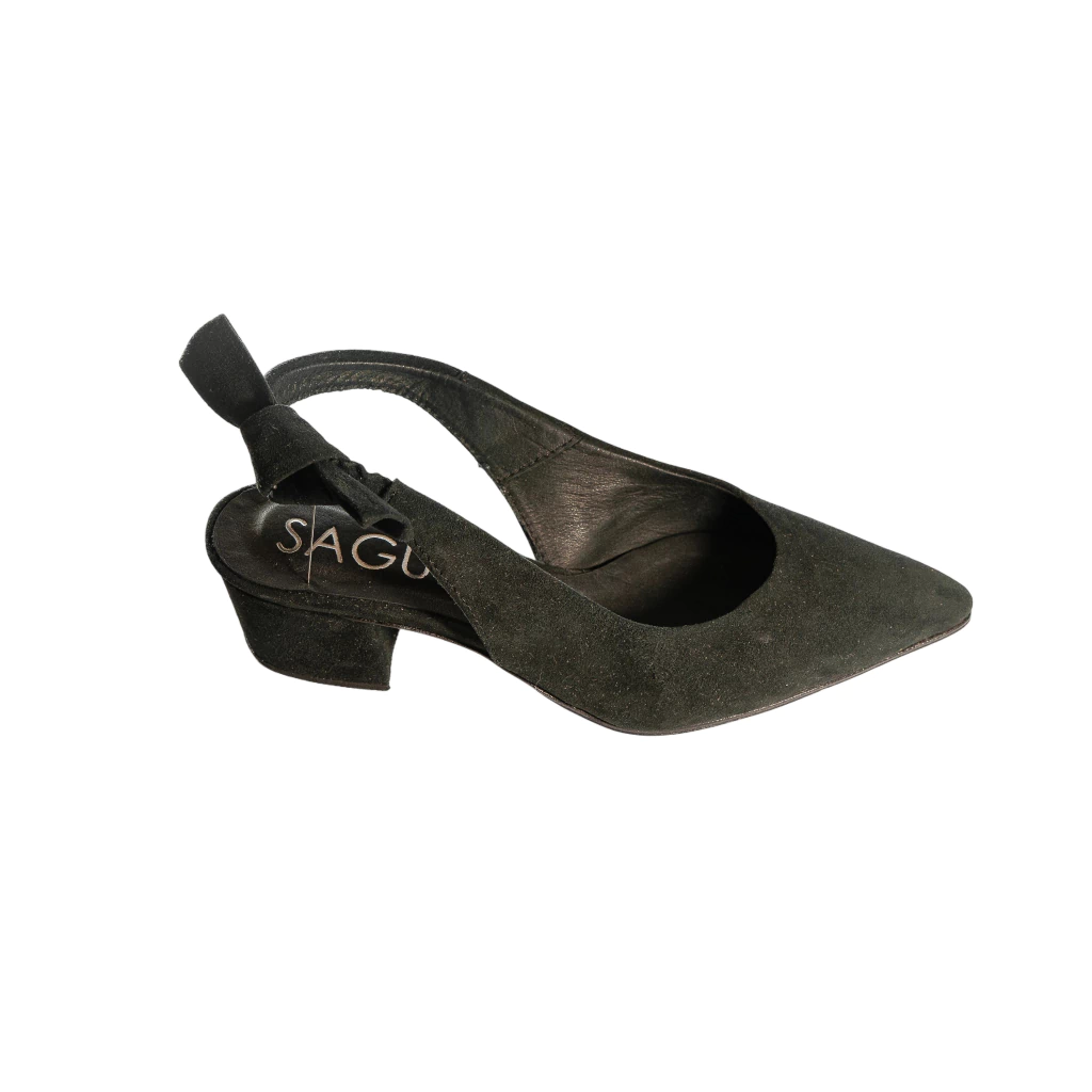 Stilleto confeccionado en cuero gamuzon vacuno con moño en talon. Taco forrado.
