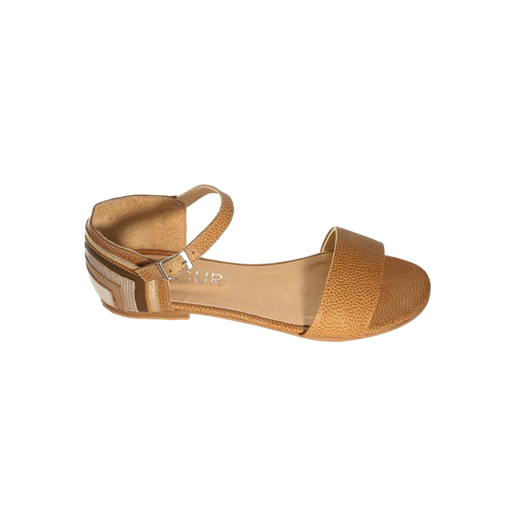Chata confeccionada en cuero vacuno con talonera con detalle de distintos cueros.